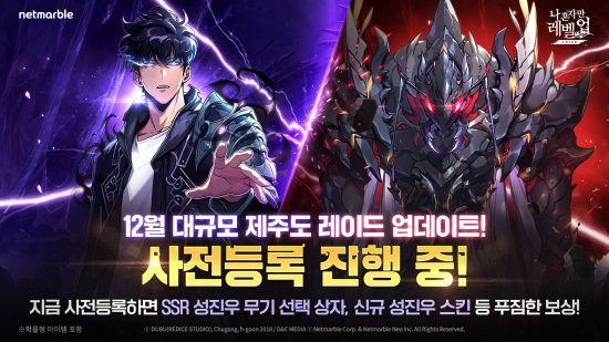 ³Ý¸¶ºíÀº ¾×¼Ç °ÔÀÓ <³ª È¥ÀÚ¸¸ ·¹º§¾÷:¾î¶óÀÌÁî>(°³¹ß»ç ³Ý¸¶ºí³×¿À)ÀÇ ¡®Á¦ÁÖµµ ·¹À̵塯 ¾÷µ¥ÀÌÆ®¸¦ ¾ÕµÎ°í »çÀüµî·ÏÀ» ÁøÇàÇÑ´Ù°í 14ÀÏ ¹àÇû´Ù.