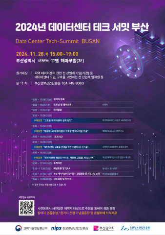 ºÎ»êÁ¤º¸»ê¾÷ÁøÈï¿øÀº ¿À´Â 11¿ù 28ÀÏ(¸ñ) ¿ÀÈÄ 3½ÃºÎÅÍ 7½Ã±îÁö Äڸ𵵠ȣÅÚ ºÎ»ê ÇØ¸¶·çȦ¿¡¼ µ¥ÀÌÅͼ¾ÅÍ °ü·Ã Àü »ê¾÷°è ÀÓÁ÷¿øµéÀ» ´ë»óÀ¸·Î ¡®2024 µ¥ÀÌÅͼ¾ÅÍ Å×Å© ¼¹Ô ºÎ»ê(Data Center Tech-Summit BUSAN)¡¯À» °³ÃÖÇÑ´Ù°í ¹àÇû´Ù.