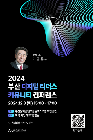 ºÎ»êÁ¤º¸»ê¾÷ÁøÈï¿øÀÌ Áö¿ª ±â¾÷ ´ëÇ¥¿Í ÀÓ¿øµéÀ» ´ë»óÀ¸·Î µðÁöÅÐ ºÐ¾ß Àü¹®°¡ÀÇ ÅëÂûÀ» Á¦°øÇÏ´Â ¡º2024 µðÁöÅÐ ¸®´õ½º Ä¿¹Â´ÏƼ ÄÁÆÛ·±½º¡»¸¦ ¿À´Â 12¿ù 3ÀÏ È¿äÀÏ ¿ÀÈÄ 3½Ã ºÎ»ê¹®ÈÄÜÅÙÃ÷ÄÞÇ÷º½º(ÇØ¿î´ë±¸ ¼ö¿µ°º¯´ë·Î 140)¿¡¼ °³ÃÖÇÑ´Ù.