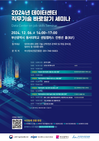 ºÎ»êÁ¤º¸»ê¾÷ÁøÈï¿øÀº ¿À´Â 12¿ù 6ÀÏ(¸ñ) ¿ÀÈÄ 2½ÃºÎÅÍ 5½Ã±îÁö µ¿¼´ëÇб³ ¼¾ÅÒÄ·ÆÛ½º ÄÁº¥¼Ç Ȧ(B1F)¿¡¼ ¡®2024 µ¥ÀÌÅͼ¾ÅÍ Á÷¹«±â¼ú ¹Ù·Î¾Ë±â ¼¼¹Ì³ª¡¯¸¦ °³ÃÖÇÑ´Ù°í ¹àÇû´Ù.