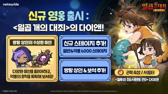 ³Ý¸¶ºíÀº ¸ð¹ÙÀÏ Ä³ÁÖ¾ó RPG <Àϰö °³ÀÇ ´ëÁË Å°¿ì±â(°³¹ß»ç ³Ý¸¶ºí¿¡ÇÁ¾Ø¾¾)>¿¡ ½Å±Ô ij¸¯ÅÍ ¡®´ÙÀ̾ء¯À» Ãâ½ÃÇß´Ù°í 4ÀÏ ¹àÇû´Ù.