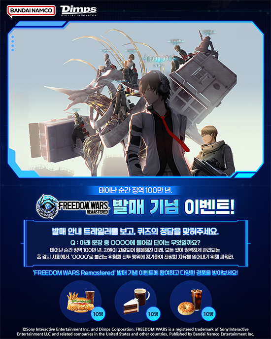 ¡®FREEDOM WARS Remastered¡¯(Çѱ¹¾îÆÇ)ÀÇ ¹ß¸Å¸¦ ±â³äÇØ, ¹Ý´ÙÀ̳²ÄÚ ¿£ÅÍÅ×ÀÎ¸ÕÆ® ÄÚ¸®¾ÆÀÇ Ä«Ä«¿ÀÅå ÆäÀÌÁö¿¡¼ À̺¥Æ®¸¦ ÁøÇàÇÑ´Ù.