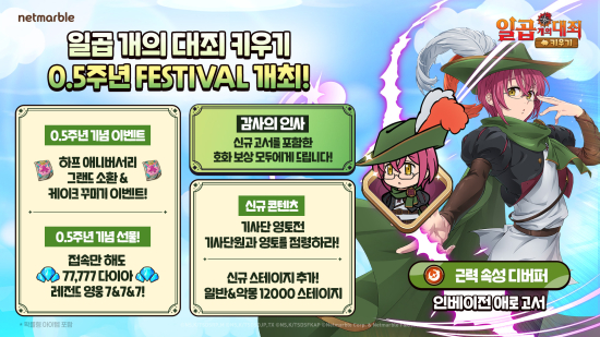 ³Ý¸¶ºíÀº ¸ð¹ÙÀÏ Ä³ÁÖ¾ó RPG <Àϰö °³ÀÇ ´ëÁË Å°¿ì±â(°³¹ß»ç ³Ý¸¶ºí¿¡ÇÁ¾Ø¾¾)>¿¡ Ãâ½Ã 0.5Áֳ⠱â³ä ½Å±Ô ij¸¯ÅÍ ¹× ÄÜÅÙÃ÷ µîÀ» ¾÷µ¥ÀÌÆ®Çß´Ù°í 25ÀÏ ¹àÇû´Ù.