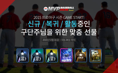 ¸ÕÀú, ¡®MVP º£À̽ºº¼ ¿Â¶óÀΡ¯¿¡¼´Â ±âÁ¸ ÀÌ¿ëÀÚ¸¦ Æ÷ÇÔÇØ ½Å±Ô, º¹±Í ÀÌ¿ëÀÚ¿¡°Ô Àα⠾ÆÀÌÅÛÀ» ÁõÁ¤ÇÏ´Â À̺¥Æ®¸¦ 5¿ù 28ÀϱîÁö ÁøÇàÇÑ´Ù. ¸ÕÀú, ½Å±Ô ÀÌ¿ëÀÚ¿¡°Ô´Â '³»±¸´Ü µ¦ ¼±¼ö ¿µÀÔ±Ç' 20Àå°ú '³»±¸´Ü °ñµåÄ«µå'°ú ÇÔ²² ´É·ÂÄ¡°¡ ³ôÀº ¼±¼ö 2¸íÀ» Áö¸íÇØ ¿µÀÔÇÒ ¼ö ÀÖ´Â ¾ÆÀÌÅÛÀ» ÁõÁ¤ÇÑ´Ù. º¹±Í ÀÌ¿ëÀÚ¿¡°Ô´Â '³»±¸´Ü µ¦ ¼±¼ö ¿µÀÔ±Ç', '³»±¸´Ü °ñµåÄ«µå ¿µÀÔ±Ç'À» Á¦°øÇÑ´Ù. ±âÁ¸ ÀÌ¿ëÀÚ¿¡°Ô´Â 'ÀÌÀû½ÃÀå TOP 30 ¿µÀÔ±Ç', 'ÀÌÀû½ÃÀå TOP 50 ¿µÀÔ±Ç', 'ÀÌÀû½ÃÀå TOP100 ¿µÀÔ±Ç'À» Áö±ÞÇÑ´Ù.
