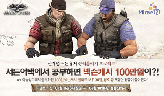 ¢ß³Ø½¼(´ëÇ¥ ¹ÚÁö¿ø)Àº 17ÀÏ ³Ø½¼ÁöƼ¢ß(´ëÇ¥ ±èÁ¤ÁØ)°¡ °³¹ßÇÑ ´ëÇѹα¹ NO.1 FPS °ÔÀÓ <¼µç¾îÅÃ>¿¡¼ °ÔÀÓ°ú ÇнÀÀ» µ¿½Ã¿¡ ÁøÇàÇÏ´Â ¡®¿¡ÀÌÇ÷¯½º(A+) ÇнÀâ°í¡¯ À̺¥Æ®¸¦ ½Ç½ÃÇÑ´Ù. ¢ß¹Ì·¡¿£ÀÇ Âü°í¼ ¡®¿Ã¸®µå¡¯¿Í Á¦ÈÞ¸¦ ¸Î°í ¿À´Â 30ÀϱîÁö ÁøÇàµÇ´Â À̹ø À̺¥Æ®´Â °ÔÀÓ ³»¿¡¼ ÁÖ¾îÁö´Â ½ÃÇè¹®Á¦¸¦ Ç®°í Á¡¼ö¸¦ ½×À¸¸é ǪÁüÇÑ º¸»óÀ» ¾ò´Â ¹æ½ÄÀÌ´Ù. ¿øÇÏ´Â °ú¸ñ°ú ³À̵µ¸¦ ¼±ÅÃÇÑ ÈÄ °ÔÀÓÀ» ½ÃÀÛÇϸé Ç÷¹ÀÌ µµÁß ¼±ÅÃÇÑ °ú¸ñÀÇ ¹®Á¦°¡ ÃÑ 2´Ü°è¿¡ °ÉÃÄ µîÀåÇϸç, Á¤´äÀ» ¸ÂÈú ¶§¸¶´Ù Á¤´ä Ƚ¼ö ¶Ç´Â Á¡¼ö°¡ ´©ÀûµÈ´Ù. 1´Ü°è ¹®Á¦ Á¤´ä Ƚ¼ö¿¡ µû¶ó Ưº° Īȣ(¹é¹ß¹éÁß, 100Á¡)¿Í 7¸¸ °æÇèÄ¡, ¡®¹Ì·¡¿£ º¸Á¶¹«±â 3Á¾ ¼¼Æ®(10ÀÏ)¡¯¸¦ Áö±ÞÇϸç, 2´Ü°è ¹®Á¦ Á¤´ä Á¡¼ö 100Á¡À» ´Þ¼ºÇÑ À¯Àú Áß Ãß÷À» ÅëÇØ 5¸í¿¡°Ô ³Ø½¼Ä³½Ã(100¸¸ ¿ø)¸¦, 100¸í¿¡°Ô ¡®¿Ã¸®µå º¸¿ì(30ÀÏ)¡¯ ¹«±â ¾ÆÀÌÅÛ°ú ½ÇÁ¦ ¡®¿Ã¸®µå ÇнÀÁö¡¯¸¦ ¼±¹°ÇÑ´Ù. ´©ÀûÁ¡¼ö »óÀ§ 5õ ¸í¿¡°Ô´Â ³Ø½¼Ä³½Ã(5õ ¿ø)¸¦ Ãß°¡ Á¦°øÇÑ´Ù. À̺¥Æ®¿Í ÇÔ²² Àα⠹æ¼ÛÀÎ ¿¹Á¤È ij¸¯Å͵µ °ø°³Çß´Ù. ½ºÆ÷Ã÷ Æ®·¹À̳ʷΠȰµ¿ ÁßÀÎ ¿¹Á¤È´Â ¿Ïº®ÇÑ ¸ö¸Å·Î ¿Â¶óÀÎ »ó¿¡¼ ¡®»ç°Ý³à¡¯, ¡®µÚų࡯ µîÀ¸·Î ºÒ¸®¸ç ¸¹Àº ÈÁ¦¸¦ ¸ð¾Ò°í, ÃÖ±Ù °¢Á¾ TV ÇÁ·Î±×·¥¿¡¼µµ ¸ÍȰ¾àÇϰí ÀÖ´Ù. À̹ø¿¡ Ãâ½ÃµÈ ij¸¯ÅÍ¿¡´Â °Ç°ÇÏ°í ¾Æ¸§´Ù¿î ¿Ü¸ð°¡ ½Ç°¨³ª°Ô Ç¥ÇöµÆ°í, ÇÇÆ®´Ï½º, °ñ¹Ý´í½º µî Ư±â¸¦ ¹Ý¿µÇÑ Àü¿ë ¸ð¼Çµµ ±¸ÇöµÆ´Ù. ij¸¯ÅÍ Ãâ½Ã¸¦ ±â³äÇØ ¿À´Â 30ÀϱîÁö ¡®¿¹Á¤È ÆÛÁñÁ¶°¢¡¯ ¾ÆÀÌÅÛÀ» ¸ð¾Æ ÆÛÁñÆÇÀ» ¿Ï¼ºÇÏ´Â ¼±Âø¼ø õ ¸í¿¡°Ô ¡®¿¹Á¤È ¼½½Ã Ⱥ¸¡¯¸¦, ±× Áß Ãß÷À» ÅëÇØ 3¹é ¸í¿¡°Ô ¡®¿¹Á¤È ¿ÀÇÁ¶óÀÎ ÆÒ¹ÌÆÃ¡¯ Âü¼® ±âȸ¸¦ Á¦°øÇÑ´Ù. ÀÌ ¿Ü¿¡ ÆÛÁñÆÇÀ» ¿Ï¼ºÇÏ´Â ¸ðµç À¯Àú¿¡°Ô´Â ¡®¿¹Á¤È Ä«¿îÆ®(5°³)¡¯ ¾ÆÀÌÅÛÀ» Áö±ÞÇÑ´Ù. ¿¹Á¤È ij¸¯ÅÍ »ç¿ë±â°£À» 44ÀÏ ÀÌ»ó ¸¸µå´Â À¯Àú¿¡°Ô´Â ¡®»ç°Ý³à¡¯, ¡®¸ö¯¡¯, ¡®º£À̱ۡ¯ µî À¯´ÏÅ© Īȣ 4Á¾À» ¸ðµÎ ¼±¹°ÇÑ´Ù. ¶ÇÇÑ, 4¿ù 20ÀϱîÁö ƯÁ¤ ½Ã°£ °ÔÀÓ¿¡ Á¢¼ÓÇÏ´Â ¸ðµç À¯Àú¿¡°Ô ¡®TRG21(IS)´«²É¡¯, ¡®Àû¸¶AK47Ä«¿îÆ®¡¯ µîÀ» Áö±ÞÇϸç, °ÔÀÓ Á¢¼Ó ½Ã°£¿¡ µû¸¥ °ÔÀÌÁö¸¦ ¸ðµÎ ä¿ì¸é ÃÖ´ë 10¸¸ °æÇèÄ¡¿Í Àα⠹«±â ¾ÆÀÌÅÛÀ» Á¦°øÇÑ´Ù. PC¹æ¿¡¼ À̺¥Æ® Âü¿© ½Ã ¡®À¯´ÏÅ© Ä«¿îÆ®¡¯¸¦ ºñ·ÔÇÑ Ãß°¡ º¸»óÀ» Áö±ÞÇÑ´Ù. <¼µç¾îÅÃ> À̺¥Æ® ¹× ½Å±Ô ij¸¯ÅÍ¿¡ ´ëÇÑ º¸´Ù ÀÚ¼¼ÇÑ ³»¿ëÀº ³Ø½¼ <¼µç¾îÅÃ> ȨÆäÀÌÁö(http://sa.nexon.com)¿¡¼ È®ÀÎÇÒ ¼ö ÀÖ´Ù.