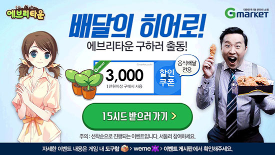 ¢ßÀ§¸ÞÀÌµå ¿£ÅÍÅ×ÀÎ¸ÕÆ®(´ëÇ¥ ÀåÇö±¹)°¡ ¼ºñ½ºÇϰí Á¶À̸ƽºÀÇ ÀÚȸ»ç ¢ßÇ÷¹·Î°ÔÀÓÁî¿¡¼ °³¹ßÇÑ °¨¼º SNG <¿¡ºê¸®Å¸¿î for Kakao>ÀÌ G¸¶ÄÏ ¹è´Þ¾Û°ú 8ÀÏ(±Ý)ºÎÅÍ Á¦ÈÞ À̺¥Æ®¸¦ ½Ç½ÃÇÑ´Ù. À̹ø À̺¥Æ®´Â G ¸¶ÄÏ¿¡¼ ½Å±Ô ·ÐĪÇÑ ¹è´Þ¾Û°ú °øµ¿À¸·Î ÁøÇàÇÏ´Â °ÍÀ¸·Î ¿À´ÃºÎÅÍ 10ÀϱîÁö 3ÀÏ °£ ¸ÅÀÏ ¿ÀÀü 10½Ã, ¼±Âø¼ø ÃÑ 1¸¸ 2õ¸í ´ë»óÀ¸·Î ÁøÇàµÈ´Ù. À̺¥Æ® Âü¿© ¹æ¹ýÀº <¿¡ºê¸®Å¸¿î> °ÔÀÓ Á¢¼Ó ½Ã º¸¿©Áö´Â À̺¥Æ® ÆäÀÌÁö¿¡¼ Âü¿© °¡´ÉÇϸç À̸¦ ÅëÇØ3,000¿ø »ó´çÀÇ G ¸¶ÄÏ ¹è´Þ ÇÒÀÎ ÄíÆù°ú °ÔÀÓ¸Ó´Ï ½Ãµå 15°³¸¦ Á¦°øÇÒ ¿¹Á¤ÀÌ´Ù. ƯÈ÷, ¼±Âø¼øÀ¸·Î ÁøÇàµÇ´Â ¸¸Å ¸¹Àº ÀÌ¿ëÀÚµéÀÇ È£ÀÀÀÌ ÀÖÀ» °ÍÀ¸·Î ±â´ëµÈ´Ù. ÇÑÆí, ÃÖ±Ù <¿¡ºê¸®Å¸¿î>Àº ´Ù¾çÇÑ ¹æ½ÄÀ¸·Î ·£´ý¹Ú½º¸¦ ȹµæÇÒ ¼ö ÀÖ´Â ½Ã½ºÅÛÀ» Ãß°¡ÇßÀ¸¸ç 5¿ù °¡Á¤ÀÇ ´ÞÀ» ¸Â¾Æ ¡®5¿ùÀÇ Çª¸¥ ³¯¿¡¡¯ Á¶°æ¹°°ú ´ÞÄÞÇÑ ¸¶½Ã¸á·Î °øÀå, ÇÁ¸®¹Ì¾ö ¼³ÅÁ °øÀå µîÀ» »õ·Ó°Ô ¼±º¸¿´´Ù. °¨¼º ½Ã³ª¸®¿À¸¦ ¹ÙÅÁÀ¸·Î ´©±¸³ª ½±°Ô Áñ±æ ¼ö ÀÖ´Â <¿¡ºê¸®Å¸¿î for Kakao>´Â ²ÙÁØÇÑ ¾÷µ¥ÀÌÆ®¿Í °¢Á¾ ÇÁ·Î¸ð¼Ç µî ²÷ÀÓ¾ø´Â Áñ±æ°Å¸®¸¦ ÀÌ¿ëÀڵ鿡°Ô Á¦°øÇØ ¸ð¹ÙÀÏ °ÔÀÓÀ¸·Î´Â ÀÌ·ÊÀûÀ¸·Î Ãâ½Ã ÀÌÈÄ 2³â ¿¬¼Ó SNG À帣 1À§¸¦ À¯ÁöÇϰí ÀÖ´Ù. <¿¡ºê¸®Å¸¿î for Kakao>¿¡ ´ëÇÑ º¸´Ù ÀÚ¼¼ÇÑ ³»¿ëÀº °ø½Ä ȨÆäÀÌÁö(http://weme.wemade.com/game/game_info.asp?GmCode=9)¸¦ ÅëÇØ È®ÀÎ ÇÒ ¼ö ÀÖ´Ù.
