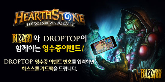 ºí¸®ÀÚµå ¿£ÅÍÅ×ÀÎ¸ÕÆ®(Blizzard Entertainment, Inc)´Â ÇÁ·£Â÷ÀÌÁî Ä¿ÇÇÀü¹®Á¡ Ä«Æä µå·Óž(DROPTOP)°ú ÇÔ²² µå·Óž Á¦Ç° ±¸¸Å ½Ã ºí¸®ÀÚµåÀÇ Ã¹ ½º¸¶Æ®Æù °ÔÀÓÀÎ ¡®ÇϽº½ºÅæ: ¿öÅ©·¡ÇÁÆ®ÀÇ ¿µ¿õµé(Hearthstone¢ç: Heroes of Warcraft¢â, ÀÌÇÏ ÇϽº½ºÅæ)¡¯ Ä«µåÆÑÀ» ¹«·á·Î ¹ÞÀ» ¼ö ÀÖ´Â ¡®ÇϽº½ºÅæ Ä«µåÆÑ ÁõÁ¤ À̺¥Æ®¡¯¸¦ 6¿ù 7ÀϱîÁö ÁøÇàÇÑ´Ù°í ¹àÇû´Ù. À̹ø ¡®ÇϽº½ºÅæ Ä«µåÆÑ ÁõÁ¤ À̺¥Æ®¡¯´Â ½º¸¶Æ®Æù ¹öÀü Ãâ½Ã·Î Ä«Æä, °ø¿ø µî ¾ðÁ¦ ¾îµð¿¡¼³ª Ä¿ÇÇ ÇÑ ÀÜÀ» ¸¶½Ã¸ç ½±°Ô Áñ±æ ¼ö ÀÖ´Â ÇϽº½ºÅæÀ» ¾Ë¸®°íÀÚ ±âȹµÆÀ¸¸ç Àü±¹ ¸ðµç Ä«Æä µå·Óž ¸ÅÀå¿¡¼ ÁøÇàµÈ´Ù. À̺¥Æ®¿¡ Âü¿©ÇÏ·Á¸é Ä«Æä µå·Óž ¸ÅÀå¿¡¼ À½·á µîÀ» ÁÖ¹®ÇÏ°í °è»êÇÑ ÈÄ ¹ÞÀº ¿µ¼öÁõ ÇÏ´Ü¿¡ ÀÖ´Â À̺¥Æ® ¹øÈ£¸¦ À̺¥Æ® ÆäÀÌÁö(http://www.hearthstone-mobile.com/droptop/)¿¡ ÀÔ·ÂÇÏ¸é µÈ´Ù.