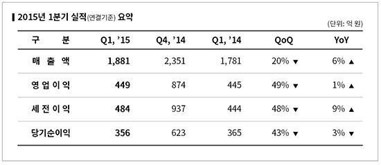 [¿£¾¾¼ÒÇÁÆ®] 2015³â 1ºÐ±â ¸ÅÃâ 1881¾ï•¿µ¾÷ÀÍ 449¾ï |