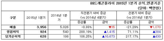 [µå·¡°ïÇöóÀÌ] 2015³â 1ºÐ±â ¿µ¾÷ÀÌÀÍ 9¾ï¡¦ÀüºÐ±â ´ëºñ 288% ¡è |