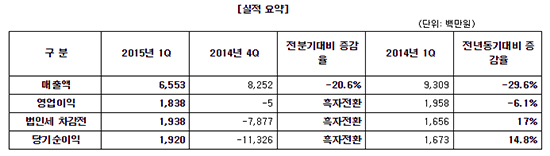 [¿¥°ÔÀÓ] 2015³â 1ºÐ±â ¿µ¾÷ÀÍ 18¾ï 4õ¡¦Àü³â´ëºñ 6.1% °¨¼Ò |