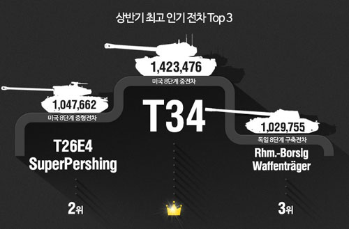 2015³â »ó¹Ý±â¿¡´Â °­·ÂÇÑ ÁÖÆ÷¿Í ³ôÀº Æ÷ž ¹æ¾î·ÂÀ» º¸À¯ÇÑ ¹Ì±¹ 8´Ü°è ÁßÀüÂ÷ T34°¡ 140¸¸ ȸ ÀÌ»ó ÀüÀå¿¡ Ãâ°Ý, ¾ÐµµÀûÀÎ ¼öÄ¡·Î ÃÖ°í Àαâ ÀüÂ÷¿¡ µî±ØÇß°í, Á¤¸é ¹æ¾î·ÂÀÌ ÁؼöÇÑ ¹Ì±¹ 8´Ü°è ÁßÇüÀüÂ÷ T26E4 SuperPershingÀÌ ±× µÚ¸¦ À̾ú´Ù.
