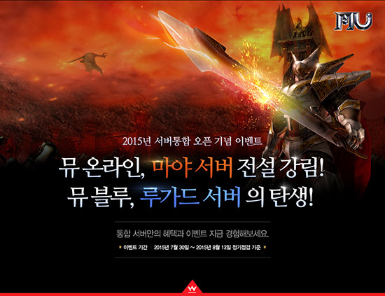 À¥Á¨(´ëÇ¥ ±èÅ¿µ, http://company.webzen.co.kr)ÀÌ MMORPG ¡®¹Â ¿Â¶óÀΡ¯ÀÇ ÀϺΠ¼¹ö¸¦ °³ÆíÇϰí ȸ¿ø À¯Ä¡¿¡ ³ª¼¹´Ù. À¥Á¨Àº ¾îÁ¦(7¿ù 30ÀÏ), ¡®¹Â ·¹µå¡¯ÀÇ ¼¹ö Áß 4°³ ¼¹ö¸¦ ¡®¸¶¾ß¡¯·Î, ¡®¹Â ºí·ç¡¯ÀÇ 2°³ ¼¹ö¸¦ ¡®·ç°¡µå¡¯·Î ÅëÇÕÇϰí ÇØ´ç ¼¹ö·Î ȸ¿øµéÀ» À¯Ä¡Çϱâ À§ÇÑ °³Æí ¼¹ö ´ë»ó ÇÑÁ¤ À̺¥Æ®¸¦ ½ÃÀÛÇß´Ù. À̹ø À̺¥Æ®´Â 8¿ù 13ÀϱîÁö ÅëÇÕ ¼¹öÀÎ ¡®¸¶¾ß¡¯¿Í ¡®·ç°¡µå¡¯¿¡ ÇÑÁ¤ÀûÀ¸·Î ÁøÇàµÇ¸ç, °³ÆíµÇÁö ¾ÊÀº ¼¹ö¿¡¼´Â À̺¥Æ®°¡ Àû¿ëµÇÁö ¾Ê´Â´Ù. ÇØ´ç±â°£ ¡®¸¶¾ß¡¯¿Í ¡®·ç°¡µå¡¯¿¡¼´Â °æÇèÄ¡ 30% »ó½Â°ú ¸ó½ºÅÍ Ã¼·Â 20% °¨¼Ò°¡ Àû¿ëµÇ°í, ±â°£ ³»¿¡ 30¸í ÀÌ»óÀÇ ±æµå¿øÀ» ¸ðÀº ±æµåµéÀ» ´ë»óÀ¸·Î Ãß÷À» °ÅÃÄ ¡®¹Â ij½Ã¡¯¸¦ ¼±¹°ÇÑ´Ù. ¶ÇÇÑ, °°Àº ±â°£ Áß ¸ÅÀÏ ¹ã 8½Ã~10½Ã »çÀÌ¿¡´Â µ¥ºñ¾Æ½º, Ÿ¸£Ä µî 5°³ Áö¿ª¿¡¼ ÁøÈ ¸ó½ºÅÍ ¡®¿¡º¸¸ó¡¯ÀÌ ÃâÇöÇÑ´Ù. '¿¡º¸¸ó'Àº Á¦Çѽ𣠵¿¾È »ç³É¿¡ ¼º°øÇÒ ¶§¸¶´Ù ÀÏÁ¤È®·ü·Î ¸ó½ºÅÍ ·¹º§¼ºÀåÀ» °ÅµìÇÏ´Â ¸ó½ºÅÍ·Î, ¸ó½ºÅÍ·¹º§ÀÌ ³ô¾ÆÁú ¼ö·Ï »ç³É ÈÄ °í±Þ ¾ÆÀÌÅÛÀ» ¾òÀ» ¼ö ÀÖ´Â À̺¥Æ® ¸ó½ºÅÍÀÌ´Ù. À̿ܿ¡µµ ¡®¹Â ·¹µå¡¯ÀÇ ¡®¸¶¾ß¡¯ ¼¹ö¿¡¼´Â ÅëÇÕ ÈÄ ¿¸®´Â ù °ø¼ºÀü¿¡¼ ½Â¸®ÇÑ ÃÊ´ë ¼ºÁÖ¿¡°Ô ¡®Àý´ë¹«±â¡¯¸¦ Ãß°¡·Î 1°³ ´õ Áö±ÞÇÏ´Â ¡®¸¶¾ß¡¯¼¹ö ÇÑÁ¤À̺¥Æ®µµ ÁغñµÅ ÀÖ´Ù. °ø¼ºÀü ÁøÇà ÀÏÁ¤Àº º°µµ °øÁöµÈ´Ù. ÇÑÆí, À¥Á¨Àº ¼¹ö °³Æí¿¡ µû¸¥ ȸ¿øµéÀÇ ºÒÆíÀ» ÃÖ¼ÒÈÇϱâ À§ÇØ ¾ÕÀ¸·Î 1³â°£ ȨÆäÀÌÁö ³» ¡®ÅëÇÕ ½Å°í¡¯ ÆäÀÌÁö¸¦ ¿î¿µÇÏ¸é¼ °³Æí ´ë»ó ¼¹öµéÀÇ Ä³¸¯ÅÍ ¹× ¾ÆÀÌÅÛ º¹±¸ ½ÅûÀ» Á¢¼ö ¹ÞÀ» ¿¹Á¤ÀÌ´Ù. À¥Á¨ÀÇ ´ëÇ¥ MMORPG ¡®¹Â ¿Â¶óÀΡ¯°ú ¡®¹Â ºí·ç¡¯¿¡ ´ëÇÑ º¸´Ù ÀÚ¼¼ÇÑ Á¤º¸¿Í À̺¥Æ® ¼Ò½ÄÀº °ø½Ä ȨÆäÀÌÁö (http://www.muonline.co.kr, http://blue.muonline.co.kr) ¿¡¼ È®ÀÎÇÒ ¼ö ÀÖ´Ù.