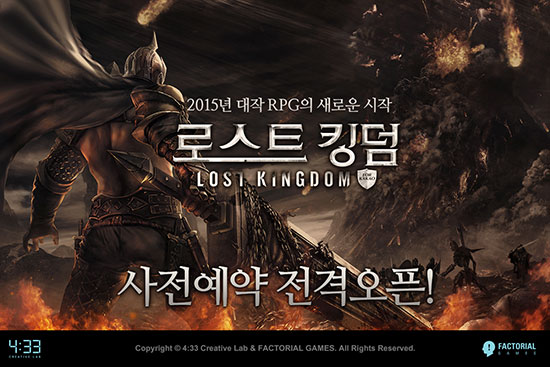 2015³â ÇϹݱâ 'ºí·¹À̵å for Kakao'¿Í '¿µ¿õ for Kakao'À» ÀÌÀ» 4:33ÀÇ ´ëÀÛ RPG°¡ ¸ð½ÀÀ» µå·¯³½´Ù. ³×½Ã»ï½Ê»ïºÐ(´ëÇ¥ Àå¿ø»ó, ¼ÒÅÂȯ, ÀÌÇÏ 4:33)Àº 31ÀÏ, Àڻ簡 ¼ºñ½ºÇÏ°í ÆÑÅ丮¾ó°ÔÀÓÁî(´ëÇ¥ À̵¿±Ô)¿¡¼ °³¹ß ÁßÀÎ ¸ð¹ÙÀÏ RPG '·Î½ºÆ®Å·´ý for Kakao'ÀÇ Æ¼Á® ÆäÀÌÁö¸¦ °ø°³ÇÏ°í »çÀü¿¹¾à ÇÁ·Î¸ð¼ÇÀ» ½Ç½ÃÇÑ´Ù°í ¹àÇû´Ù. '·Î½ºÆ®Å·´ý for Kakao'´Â 4:33ÀÌ Áö³ÇØ Àü·«Àû ÅõÀÚ¸¦ ´ÜÇàÇØ ÀÚȸ»ç·Î ¸¸µç ÆÑÅ丮¾ó°ÔÀÓÁîÀÇ Ã¹ ÀÛǰÀ¸·Î ½ºÅ¸Àϸ®½¬ÇÑ ¾×¼Ç, ȸéÀ» ¾ÐµµÇÏ´Â ±ØÇÑÀÇ Ç÷¹ÀÌ °æÇè µî ±âÁ¸ ¸ð¹ÙÀÏ RPGº¸´Ù ÁøÀϺ¸ÇÑ ¸ð½ÀÀ» º¸¿©ÁÙ ¿¹Á¤ÀÌ´Ù. 4:33Àº À̹ø ƼÁ® ÆäÀÌÁö¸¦ ÅëÇØ '·Î½ºÆ®Å·´ý for Kakao' ÇÁ·Î¸ð¼Ç ¿µ»óÀ» °ø°³Çϰí, ¼øÂ÷ÀûÀ¸·Î ÄÜÅÙÃ÷¸¦ ¿ÀÇÂÇÒ ¿¹Á¤ÀÌ´Ù. ÀÌ¿ëÀÚ´Â À̹ø °ø°³µÈ ÇÁ·Î¸ð¼Ç ¿µ»ó¿¡¼ ¼ö¹é¿© ¸ó½ºÅÍ¿Í ÃÖÈÄÀÇ °áÀüÀ» Ä¡¸£´Â ÁÖÀΰøÀÇ ¸ð½ÀÀ» °¨»óÇÒ ¼ö ÀÖ´Ù. '·Î½ºÆ®Å·´ý for Kakao' »çÀü¿¹¾àÀº īī¿À°ÔÀÓ »çÀü¿¹¾à ¼ºñ½º¸¦ ÅëÇØ ÁøÇàµÇ¸ç, Âü¿©ÇÏ´Â ¸ðµç ÀÌ¿ëÀÚ¿¡°Ô´Â Á¤½Ä ¼ºñ½º ÈÄ °¢ Ŭ·¡½º º° ¿µ¿õ µî±Þ ¹«±â¿Í À¯·áij½Ã 100°³, ±×¸®°í īī¿ÀÅå »ó³²ÀÚ ÇÁ¶ûÅ© ½ºÆ¼ÄÜ 16Á¾À» Áö±ÞÇÑ´Ù. »çÀü¿¹¾àÀº http://m.event.four33.co.kr/lostkingdom/teasing/pre_register ¿¡¼ Âü¿©ÇÒ ¼ö ÀÖÀ¸¸ç, '·Î½ºÆ®Å·´ý for Kakao'¿¡ ´ëÇÑ ÀÚ¼¼ÇÑ Á¤º¸´Â °ø½Ä Ä«Æä http://cafe.naver.com/lostkingdom433 ¿¡¼ È®ÀÎÇÒ ¼ö ÀÖ´Ù.