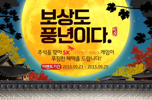 À̹ø Ãß¼®¸ÂÀÌ À̺¥Æ®´Â ÇöÀç SK³×Æ®¿÷½º¼ºñ½º°¡ ¼ºñ½º ÁßÀÎ ¡®Áö±ÝºÎÅÍ µµ³Ó¡¯°ú ¡®´õ Æ®·Ð¡¯, ¡®»ï±¹Áö õÇÏ¿µ¿õÀü¡¯, ¡®»ï±¹Áö ¿µ¿õÀü¡¯, ¡®Ä¸½¶ Dzº¼ ¸Å´ÏÀú¡¯¿¡ Àû¿ëµÇ¸ç Ãß¼® ¿¬ÈÞ°¡ ³¡³ª´Â 29ÀϱîÁö ¸ÅÀÏ, °ÔÀÓ¿¡ Á¢¼ÓÇÏ´Â ¸ðµç À¯Àú¿¡°Ô ´Ù¾çÇÑ ¾ÆÀÌÅÛÀ» Áö±ÞÇÑ´Ù.