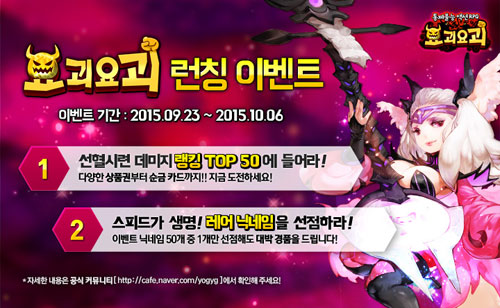 ¡®¿ä±«¿ä±«¡¯¿¡ ´ëÇÑ °ÔÀÓ Á¤º¸ ¹× À̺¥Æ® µîÀÇ ¼Ò½ÄÀº °ø½Ä ÆäÀÌÁö (http://ygyg.gurumcompany.com) ¿Í °ø½Ä Ä¿¹Â´ÏƼ(http://cafe.naver.com/yogyg) ¿¡¼ È®ÀÎ ÇÒ ¼ö ÀÖ´Ù.
