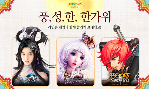 ¶óÀÎÄáÄÚ¸®¾Æ Ãß¼® À̺¥Æ®¿¡ ´ëÇÑ º¸´Ù ÀÚ¼¼ÇÑ ³»¿ëÀº ¡®Ãµ»ó°Ë¡¯ °ø½ÄÄ«Æä(http://cafe.naver.com/lingkong), ¡®Ãµ»ó°Ë for Kakao¡¯ °ø½ÄÄ«Æä(http://cafe.naver.com/csgkakao), ¡®È÷¾î·ÎÁî¼Òµå for Kakao¡¯ °ø½ÄÄ«Æä(http://cafe.naver.com/heroessword), ¡®ºí·¹ÀÌµå ¿Àºê °«¡¯ °ø½ÄÄ«Æä(http://cafe.naver.com/lkblade)¿¡¼ È®ÀÎÇÒ ¼ö ÀÖ´Ù.