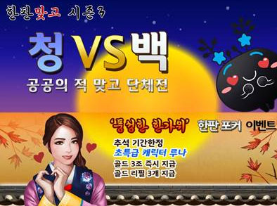 ¾Èµå·Î¸Þ´Ù°ÔÀÓÁî°¡ °³¹ßÇÏ°í ¼ºñ½ºÇÏ´Â ¸ð¹ÙÀÏ °ÔÀÓ ¡°ÇÑÆÇ¸Â°í¡±¿Í ¡°ÇÑÆÇÆ÷Ä¿¡±°¡ Ãß¼® ¸íÀýÀ» ¸Â¾Æ ½Å°³³ä ÄÁÅÙÃ÷ ¡°°ø°øÀÇ Ã»¹éÀü¡± ¾÷µ¥ÀÌÆ®¿Í ǪÁüÇÑ »óǰ À̺¥Æ®¸¦ ÁøÇàÇÑ´Ù.