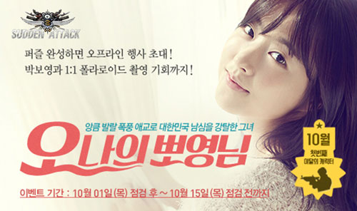 ¿À´Â 15ÀϱîÁö ¹Úº¸¿µ ij¸¯ÅÍ ÆÛÁñ ¾ÆÀÌÅÛÀ» ¸ð¾Æ ¡®2015 ¹Úº¸¿µ ÆÛÁñÆÇ¡¯À» ¿Ï¼ºÇÏ´Â ¼±Âø¼ø 500¸íÀÇ À¯Àú¿¡°Ô´Â ¡®¹Úº¸¿µ°ú ÇÔ²²ÇÏ´Â ¿ÀÇÁ¶óÀÎ Çà»ç¡¯ Âü¼® ±âȸ¸¦ Á¦°øÇϸç, ÆÛÁñÀ» ¿Ï¼ºÇÑ ¸ðµç À¯Àú¿¡°Ô´Â ¹Úº¸¿µÀÇ ¸ñ¼Ò¸®°¡ ´ã±ä ½ºÆä¼È ¾ÆÀÌÅÛ ¡®»Ç ±ÙÁ¢¹«±â(100ÀÏ)¡¯À», ±× Áß Ãß÷À» ÅëÇØ 5¸í¿¡°Ô´Â ¡®¹Úº¸¿µ°ú 1:1 Æú¶ó·ÎÀ̵å ÃÔ¿µ¡¯ ±âȸ¸¦ Á¦°øÇÑ´Ù.