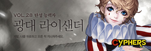 ¡®±¤´ë ¶óÀÌ»÷´õ¡¯ ij¸¯ÅÍ¿Í °ü·Ã ÀÚ¼¼ÇÑ »çÇ×Àº »çÀÌÆÛÁî °ø½Ä ȨÆäÀÌÁö(http://cyphers.nexon.com)¸¦ ÅëÇØ È®ÀÎÇÒ ¼ö ÀÖ´Ù.
