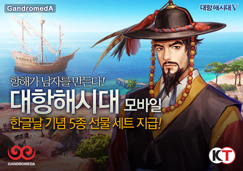 °£µå·Î¸Þ´Ù(GandromedA)´Â Àڻ簡 ±¹³» ¼­ºñ½º¸¦ Çϰí, ÀϺ»ÀÇ ÄÚ¿¡ÀÌ Å×Å©¸ð °ÔÀÓÁî(KOEI TECMO GAMES)°¡ °³¹ßÇÑ '´ëÇ×ÇØ½Ã´ë5 ¸ð¹ÙÀÏ'¿¡¼­ Çѱ۳¯À» ±â³äÇÏ¿© °¢Á¾ Àǹ̰¡ ´ã±ä 'Çѱ۳¯ ±â³ä 5Á¾ ¼±¹° ¼¼Æ®'¸¦ Áö±ÞÇÑ´Ù°í ¹àÇû´Ù.