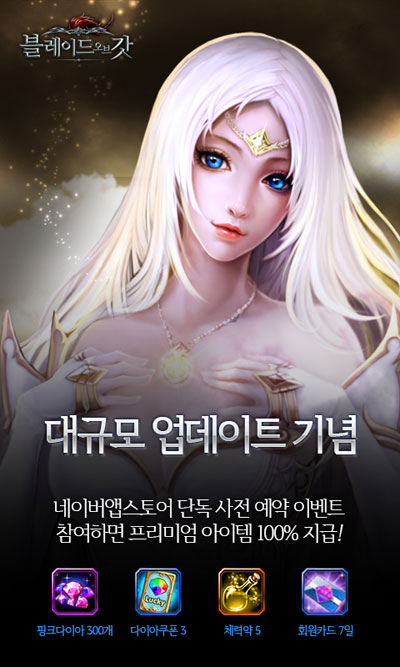¡®ºí·¹À̵å¿Àºê°«¡¯Àº À̹ø ´ë±Ô¸ð ¾÷µ¥ÀÌÆ®¸¦ ¾ÕµÎ°í ¾÷µ¥ÀÌÆ® ÁøÇà Àü±îÁö ³×À̹ö ¾Û½ºÅä¾î¸¦ ÅëÇØ »çÀüµî·ÏÀ» ÁøÇàÇÑ´Ù. »çÀüµî·Ï¿¡ Âü¿©ÇÏ´Â À¯Àú Àü¿øÀº ÇÎÅ©´ÙÀ̾Æ(300°³), ´ÙÀ̾ÆÄíÆù(3Àå), ü·Â¾à(5°³), ȸ¿øÄ«µå 7ÀÏ(1Àå)·Î ±¸¼ºµÈ 7¸¸¿ø »ó´çÀÇ ÇÁ¸®¹Ì¾ö ¾ÆÀÌÅÛÀ» 100% ¹Þ¾Æº¼ ¼ö ÀÖ´Ù.