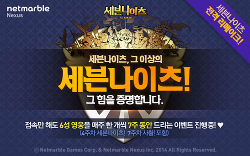 ³Ý¸¶ºí°ÔÀÓÁî(ÀÌÇÏ ³Ý¸¶ºí, ´ëÇ¥ ±Ç¿µ½Ä, www.netmarble.net)´Â ¸ð¹ÙÀÏ RPG(¿ªÇÒ¼öÇà°ÔÀÓ) ¡®¼¼ºì³ªÀÌÃ÷(°³¹ß»ç ³Ý¸¶ºí³Ø¼½º)¡¯ÀÇ ¸ÞÀÎ±Þ ¿µ¿õ 7Á¾À» ¸®¸ÞÀÌÅ©ÇÏ´Â µî ´ë±Ô¸ð ¾÷µ¥ÀÌÆ®¸¦ ½Ç½ÃÇß´Ù.
