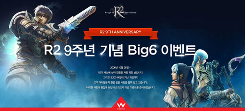 À¥Á¨(´ëÇ¥ ±èÅ¿µ, http://company.webzen.co.kr)ÀÇ Àå¼ö PC MMORPG ¡®R2(Reign of Revolution)¡¯°¡ ¼ºñ½º 9ÁÖ³âÀ» ¸Â¾Ò´Ù.