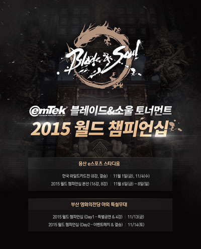 ¡®ºí¼Ò Åä³Ê¸ÕÆ® 2015 ¿ùµå èÇǾð½Ê¡¯Àº 11¿ù 1ÀÏ ¿ë»ê¿¡¼ ÁøÇàÇÏ´Â ¿ÍÀϵå Ä«µåÀüÀ» ½ÃÀÛÀ¸·Î 2ÁÖ°£ÀÇ ´ëÀåÁ¤¿¡ ³ª¼±´Ù. °á¼±Àº ºÎ»ê ¿µÈÀÇÀü´ç¿¡¼ 11¿ù 13ÀÏ, 14ÀÏ ¾çÀϰ£ ÁøÇàÇÑ´Ù.