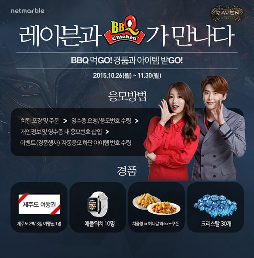 ¿À´Â 11¿ù 30ÀϱîÁö BBQ ġŲÀ» ±¸¸ÅÇÏ¸é ¡®·¹À̺졯 ÀçÈ ¾ÆÀÌÅÛÀÎ Å©¸®½ºÅ» 30°³¸¦ 100% Áö±ÞÇϸç, Á¦ÁÖµµ ¿©Çà±Ç(1¸í, 1ÀÎ 2¸Å Áö±Þ), ¾ÖÇÿöÄ¡(10¸í), BBQ ġŲ »óǰ±Ç µî ´Ù¾çÇÑ °æÇ°¿¡ ÀÀ¸ðÇÒ ¼ö ÀÖ´Â ±âȸ¸¦ Á¦°øÇÑ´Ù.