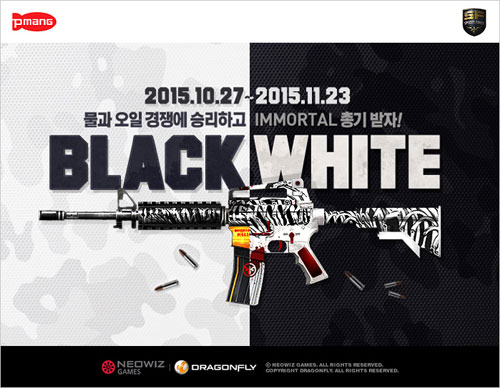 ³×¿ÀÀ§Áî°ÔÀÓÁî´Â ½Å±Ô ¹«±â ¾÷µ¥ÀÌÆ®¿Í ÇÔ²² ¿À´Â 11¿ù 23ÀÏ(¿ù)±îÁö ÇÏ·ç 30ºÐ Âü¿©¸¸À¸·Î ¿øÇÏ´Â »ö»ó°ú ŸÀÔÀÇ Ãѱ⸦ ¹«·á·Î ȹµæ °¡´ÉÇÑ ±â³ä À̺¥Æ®¸¦ ½Ç½ÃÇÑ´Ù. ¸ÕÀú À̺¥Æ® ÆäÀÌÁö¿¡¼ ºí·¢ÆÀ°ú ÈÀÌÆ®ÆÀ Áß ÇÑ ÆÀÀ» ¼±ÅÃÇÑ µÚ 30ºÐ Ç÷¹À̸¦ ÁøÇàÇÏ¸é ¹° 1°³¸¦ Áö±ÞÇϰí PC¹æ¿¡¼ Á¢¼ÓÇÒ °æ¿ì ¿ÀÀÏ 1°³¸¦ Ãß°¡·Î ¹ÞÀ» ¼ö ÀÖ´Ù.