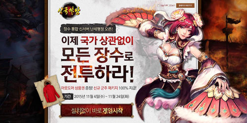 ´ÙÀ½°ÔÀÓ(´ëÇ¥ ±è¿ëÈÆ)Àº, ½º¸¶Æ®°ÔÀÓÁî(´ëÇ¥ ÀӰǼö)¿¡¼ °³¹ßÇÑ ±¹»ê À¥Àü·« °ÔÀÓ ¡®»ï±¹¾ß¸Á¡¯ÀÇ Àå¼ö ÅëÇÕ ½Å±Ô ¼¹ö ¡®³¼¼ÆòÁ¤¡¯À» 11¿ù 4ÀÏ¿¡ ¿ÀÇÂÇϰí, ½Å¼¹ö ¿ÀÇ ±â³ä À̺¥Æ®¸¦ ÁøÇàÇÑ´Ù°í ¹àÇû´Ù.