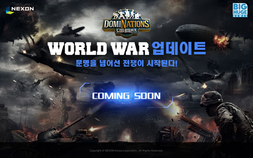 ¢ß³Ø½¼(´ëÇ¥ ¹ÚÁö¿ø)Àº 6ÀÏ ºòÈÞÁî°ÔÀÓÁî(Big Huge Games)°¡ °³¹ßÇÑ Àα⠸ð¹ÙÀϰÔÀÓ ¡®µµ¹Ì³×À̼ÇÁî(DomiNations)¡¯ÀÇ ´ë±Ô¸ð ¾÷µ¥ÀÌÆ® ¡®¿ùµå ¿ö(World War)¡¯¸¦ ¾ÕµÎ°í ƼÀú »çÀÌÆ®¸¦ ¿ÀÇÂÇß´Ù.