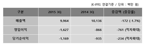 À̽ºÆ®¼ÒÇÁÆ®(´ëÇ¥ ±èÀåÁß)´Â 6ÀÏ ÀáÁ¤½ÇÀû °ø½Ã¸¦ ÅëÇØ, K-IFRS ¿¬°áÀ繫Á¦Ç¥ ±âÁØ 2015³âµµ 3ºÐ±â ¸ÅÃâ 99.6¾ï ¿ø, ´©Àû ¸ÅÃâ 316.6¾ï ¿ø, ¿µ¾÷ÀÌÀÍ -16.2¾ï ¿øÀ» ±â·ÏÇß´Ù°í ¹àÇû´Ù.