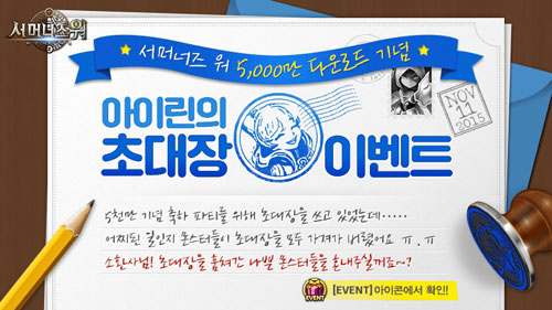 ÇÑÆí, ÄÄÅõ½º´Â '¼¸Ó³ÊÁî ¿ö'ÀÇ 5,000¸¸ ´Ù¿î·Îµå µ¹ÆÄ¸¦ ±â³äÇϱâ À§ÇØ Àü ¼¼°è ¸ðµç ÀÌ¿ëÀÚµé°ú ÇÔ²² ÇÏ´Â ¸ó½ºÅÍ »ç³É À̺¥Æ®¸¦ ±ÝÀÏ(11ÀÏ)ºÎÅÍ ¿À´Â 22ÀϱîÁö ½Ç½ÃÇÑ´Ù. À̺¥Æ® ±â°£ µ¿¾È °ÔÀÓ ³» ¸ðµç ½Ã³ª¸®¿À Áö¿ª ¹× ´øÀü ÀüÅõ ½Ã ¸¸³ª´Â ¸ó½ºÅ͸¦ »ç³ÉÇÏ¸é µÇ¸ç, ÃÖ¼Ò 100¸¶¸®ºÎÅÍ ÃÖ´ë 5,000¸¶¸®±îÁö »ç³ÉÇÑ ¸ó½ºÅÍ ¼ö¿¡ µû¶ó °ÔÀÓ ÀçÈ»Ó ¾Æ´Ï¶ó ½ÅºñÀÇ ¼Òȯ¼, ºû°ú ¾îµÒÀÇ ¼Òȯ¼, µ¥ºô¸ó µî dz¼ºÇÑ °ÔÀÓ ¾ÆÀÌÅÛÀ» ¼±¹°ÇÑ´Ù.