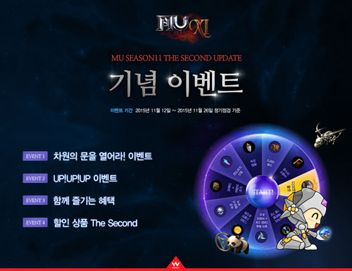 À¥Á¨ÀÇ ´ëÇ¥ MMORPG ¡®¹Â ¿Â¶óÀÎ Season11¡¯ÀÇ µÎ ¹øÂ° ¾÷µ¥ÀÌÆ®¿Í À̺¥Æ®¿¡ ´ëÇÑ º¸´Ù ÀÚ¼¼ÇÑ Á¤º¸´Â °ø½Ä ȨÆäÀÌÁö(http://www.muonline.co.kr)¿¡¼ È®ÀÎÇÒ ¼ö ÀÖ´Ù.