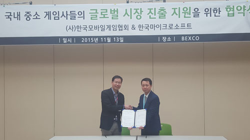 (»ç)Çѱ¹¸ð¹ÙÀϰÔÀÓÇùȸ¿Í Çѱ¹¸¶ÀÌÅ©·Î¼ÒÇÁÆ®´Â Áö³ 11¿ù 13ÀÏ ºÎ»ê¿¡¼ ¿¸° ±¹³»°ÔÀÓÀü½Ãȸ ¡®Áö½ºÅ¸ 2015¡¯¿¡¼ Çѱ¹ ¸ð¹ÙÀÏ °ÔÀÓ »ê¾÷ ¹ßÀü°ú °³¹ß»çµéÀÇ ±Û·Î¹ú »ç¾÷ ÁøÃâ ºû À©µµ¿ì ½ºÅä¾î »ç¾÷ Ȱ¼ºÈ¸¦ À§ÇÑ ¾çÇØ °¢¼(ÀÌÇÏ MOU)¸¦ ü°á ÇÏ¿´´Ù.
