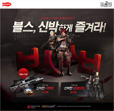 FPS°ÔÀÓ ¡®ºí·¢½ºÄõµå¡¯ÀÇ ¼­ºñ½º 1Áֳ⠱â³ä ¾÷µ¥ÀÌÆ®¿Í À̺¥Æ®¿¡ ´ëÇÑ º¸´Ù ÀÚ¼¼ÇÑ »çÇ×Àº °ø½Ä ȨÆäÀÌÁö(http://blacksquad.pmang.com)¿¡¼­ È®ÀÎÇÒ ¼ö ÀÖ´Ù.