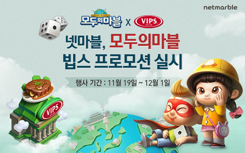 ³Ý¸¶ºí°ÔÀÓÁî(ÀÌÇÏ ³Ý¸¶ºí, ´ëÇ¥ ±Ç¿µ½Ä, www.netmarble.com)´Â ÀÚ»çÀÇ Àαâ ijÁÖ¾ó ¸ð¹ÙÀÏ °ÔÀÓ ¡®¸ðµÎÀǸ¶ºí for Kakao(ÀÌÇÏ ¸ðµÎÀǸ¶ºí)¡¯°ú ½ºÅ×ÀÌÅ© ÇϿ콺 º÷½º(VIPS)¿ÍÀÇ Á¦ÈÞ ÇÁ·Î¸ð¼ÇÀ» ±ÝÀÏ(19ìí)ºÎÅÍ 12¿ù 1ÀÏ(È­)±îÁö ÁøÇàÇÑ´Ù.