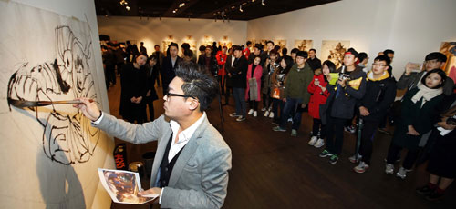 Àα⠿¶óÀÎ °ÔÀÓ°ú Çѱ¹ ¹Ì¼úÀÇ ¸¸³²À¸·Î ÁÖ¸ñ ¹ÞÀº À̹ø Àü½Ã´Â 11¿ù 25ÀϺÎÅÍ 12¿ù 7ÀϱîÁö ¼¿ï Á¾·Î¿¡ À§Ä¡ÇÑ °¡³ªÀÎ»ç¾ÆÆ®¼¾ÅÍ¿¡¼ ÁøÇàµÆÀ¸¸ç, Çѱ¹ ¹Ì¼úÀ» ´ëÇ¥ÇÏ´Â ¶ó¿À¹Ì, ½Å¹Ì°æ, ½Å¿µÈÆ, À¯°©±Ô, À̵¿¿¬, ÀÓÅÂ±Ô 6ÀÎÀÇ ÀÛ°¡°¡ LoL °ÔÀÓ ³» ¹è°æ°ú èÇǾð µîÀÇ ¿ä¼Ò¸¦ ÀçÇØ¼®ÇÑ ÀÛǰÀ» ¼±º¸¿© LoL ÆÒµéÀÇ ¶ß°Å¿î °ü½ÉÀ» ¹Þ¾Ò´Ù.