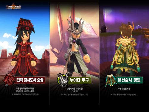 ¢ßÀ§¸ÞÀÌµå ¿£ÅÍÅ×ÀÎ¸ÕÆ®(´ëÇ¥ ÀåÇö±¹)ÀÇ ÀÚȸ»ç ¢ßÀ§¸ÞÀÌµå¾ÆÀÌ¿À¿¡¼ ¼ºñ½ºÇÏ´Â Àα⠴ëÀü ¾×¼Ç ¿Â¶óÀÎ °ÔÀÓ < ·Î½ºÆ®»ç°¡(www.lostsaga.com)>°¡ ¿À´Ã(9ÀÏ) ½Å±Ô ·¹¾î Àåºñ 3Á¾À» °ø°³Çß´Ù.