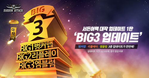 ¢ß³Ø½¼(´ëÇ¥ ¹ÚÁö¿ø)Àº 11ÀÏ ³Ø½¼ÁöƼ¢ß(´ëÇ¥ ±èÁ¤ÁØ)°¡ °³¹ßÇÑ ´ëÇѹα¹ NO.1 FPS °ÔÀÓ ¡®¼µç¾îÅá¯ÀÇ °Ü¿ï ´ë±Ô¸ð ¾÷µ¥ÀÌÆ® ¡®´ëÀÛ¡¯À» °ø°³Çϰí 1ź ¡®BIG3¡¯ ¾÷µ¥ÀÌÆ®¸¦ ½Ç½ÃÇß´Ù.