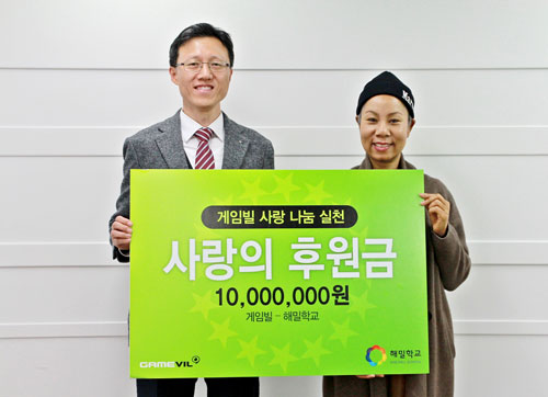 ¾Õ¼ °ÔÀÓºôÀº ÇØ¹ÐÇб³(www.haemillschool.com)¿¡ ¡®»ç¶ûÀÇ ÈÄ¿ø±Ý¡¯ 1õ ¸¸ ¿øÀ» Àü´ÞÇß´Ù. ÇØ¹ÐÇб³´Â °¡¼ö ÀμøÀ̰¡ ´Ù¹®È °¡Á¤ ÇлýµéÀ» À§ÇØ ´ëÇѹα¹ ÃÖÃÊ·Î ¼³¸³, 2013³â 4¿ù °¿øµµ ȫõ¿¡¼ °³±³Çß´Ù. ű¹, º£Æ®³², ¿ìÁŰ½ºÅº µî ´Ù¹®È °¡Á¤ÀÇ Ã»¼Ò³âµé·Î ±¸¼ºµÇ¾î ÀÖÀ¸¸ç, ÇöÀç ÁßÇб³ °úÁ¤ÀÇ Çлý ÃÑ 15¸íÀÌ ÀçÇÐ ÁßÀÌ´Ù. °ÔÀÓºôÀº ±Û·Î¹ú °ÔÀÓ»ç·Î¼ ÇØ¹ÐÇб³ ÀçÇлýµéÀÌ ¹à°í °Ç°ÇÑ Çб³ »ýȰÀ» Áö¼ÓÇÒ ¼ö ÀÖµµ·Ï ÇÏÀÚ´Â ÃëÁö¿¡¼ À̹ø ÀÚ¸®¸¦ ¸¶·ÃÇßÀ¸¸ç, ÈÄ¿ø±ÝÀº ±³³» ½Ã¼³, ±³À° Ȱµ¿ Áö¿ø µî ´Ù¹æ¸éÀ¸·Î Ȱ¿ëµÉ ¿¹Á¤ÀÌ´Ù.