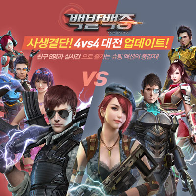 ³Ý¸¶ºí°ÔÀÓÁî(ÀÌÇÏ ³Ý¸¶ºí, ´ëÇ¥ ±Ç¿µ½Ä)´Â ijÁÖ¾ó ¸ð¹ÙÀÏ ½´ÆÃ°ÔÀÓ ¡®¹é¹ß¹éÁß for KAKAO(ÀÌÇÏ ¹é¹ß¹éÁß)¡¯¿¡ ½Ç½Ã°£ 4vs4 ´ëÀü¸ðµå¸¦ Ãß°¡ÇÏ´Â ´ë±Ô¸ð ¾÷µ¥ÀÌÆ®¸¦ ½Ç½ÃÇß´Ù°í 16ÀÏ ¹àÇû´Ù.