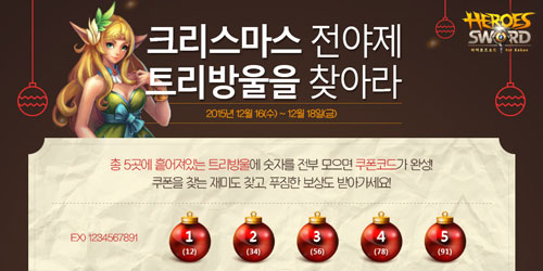 À̹ø ¾÷µ¥ÀÌÆ®´Â °Ü¿ï ÃÖ´ë À̺¥Æ®ÀÎ Å©¸®½º¸¶½º¸¦ ¸ÂÀÌÇϱâ Àü À¯ÀúµéÀÌ ¡®È÷¾î·ÎÁî¼Òµå for Kakao¡¯¿¡¼ Àü¾ßÁ¦¸¦ Áñ±æ ¼ö ÀÖµµ·Ï ¸¶·ÃµÇ¾ú´Ù. °ÔÀÓ °¡À̵å, °øÁö»çÇ×, FAQ µî ÃÑ 5°÷ÀÇ GM°Ô½Ã¹°¿¡¼ ÄíÆù ¹øÈ£°¡ ÀûÇô ÀÖ´Â Æ®¸® ¹æ¿ïÀ» ã¾Æ ÃÖÁ¾ Äڵ带 ¿Ï¼ºÇϸé dz¼ºÇÑ º¸»óÀ» ¹Þ¾Æº¼ ¼ö ÀÖ´Ù.