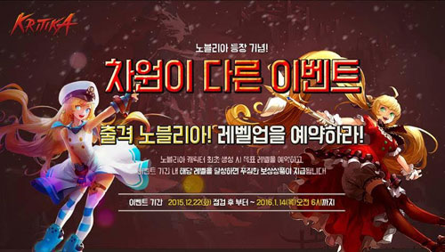 ³ëºí¸®¾ÆÀÇ µîÀåÀ» ±â³äÇØ ¡®Â÷¿øÀÌ ´Ù¸¥ À̺¥Æ®¡¯°¡ ÁøÇàµÈ´Ù. ¿À´Â 1¿ù 14ÀÏ(¸ñ)±îÁö ³ëºí¸®¾Æ ij¸¯Å͸¦ »ý¼ºÇØ ¸ñÇ¥ ·¹º§À» ´Þ¼ºÇϸé Àåºñ ¼±Åà »óÀÚ, ÆÇµµ¶ó »óÀÚ, ±â°£Á¦ Æê µî ´Ù¾çÇÑ º¸»ó »óǰÀ» Áö±ÞÇϸç, ƯÈ÷ ¸¸ ·¹º§À» ´Þ¼ºÇÒ °æ¿ì ÃÑ 6¸¸¿ø »ó´çÀÇ ¾ÆÀÌÅÛÀ» ¹ÞÀ» ¼ö ÀÖ´Ù. ¶ÇÇÑ 2¿ù 4ÀÏ(¸ñ)±îÁö ÁøÇàµÇ´Â ¡®³ëºí¸®¾Æ ¼ºÀå Áö¿ø À̺¥Æ®¡¯¸¦ ÅëÇØ 1·¹º§ ´ÜÀ§·Î ¼ºÀåÇÒ ¶§¸¶´Ù º¸»ó »óǰÀ», 15·¹º§À» ´Þ¼ºÇÏ¸é ³ëºí¸®¾Æ¿Í ÇÔ²² ¼ºÀåÇÏ´Â ¹«±â ¾ÆÀÌÅÛÀ» Áö±ÞÇÑ´Ù.