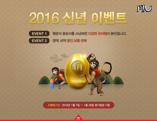 À¥Á¨ÀÇ ´ëÇ¥ MMORPG ¡®¹Â ¿Â¶óÀΡ¯ÀÇ °ÔÀÓ Á¤º¸¿Í À̺¥Æ®¿¡ ´ëÇÑ º¸´Ù ÀÚ¼¼ÇÑ ¼Ò½ÄÀº °ø½Ä ȨÆäÀÌÁö(http://www.muonline.co.kr)¿¡¼ È®ÀÎÇÒ ¼ö ÀÖ´Ù.