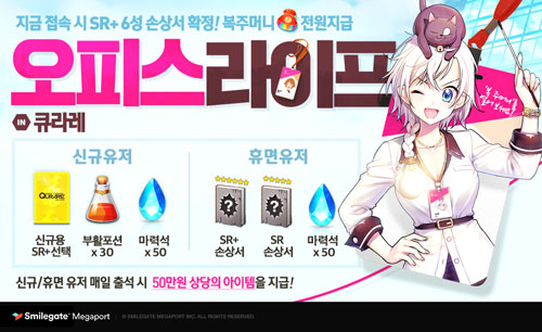½º¸¶ÀϰÔÀÌÆ® ¸Þ°¡Æ÷Æ®´Â À̹ø ½ÃÁð ¾÷µ¥ÀÌÆ®¸¦ ±â³äÇØ ¿À´Â 2¿ù 25ÀÏ(¸ñ)±îÁö °ÔÀÓ¿¡ Á¢¼ÓÇÏ´Â À¯Àú Àü¿ø¿¡°Ô 6¼º SR+ µî±Þ ¼Õ»ó¼ ¾ÆÀÌÅÛÀ» È®Á¤À¸·Î ¹ÞÀ» ¼ö ÀÖ´Â ¡®º¹ÁÖ¸Ó´Ï¡¯¸¦ Áö±ÞÇÑ´Ù. ¶Ç, ½Å±Ô À¯Àú³ª ÇÑ´Þ ÀÌ»ó Á¢¼ÓÇÏÁö ¾Ê¾Ò´ø º¹±Í À¯ÀúµéÀÌ À̺¥Æ® ±â°£ Áß 14ÀÏ ¿¬¼Ó °ÔÀÓ¿¡ Á¢¼ÓÇÏ¸é ¸¶·Â¼®, ºÎȰÆ÷¼Ç, SR+ ¼Õ»ó¼ µî ÃÑ 50¸¸¿ø »ó´çÀÇ ¾ÆÀÌÅÛÀ» ¹ÞÀ» ¼ö ÀÖ´Ù.