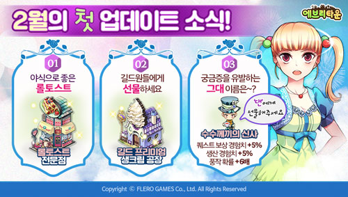 ¢ßÀ§¸ÞÀÌµå ¿£ÅÍÅ×ÀÎ¸ÕÆ®(´ëÇ¥ ÀåÇö±¹)ÀÇ °è¿È¸»ç ¢ßÇ÷¹·Î°ÔÀÓÁî(´ëÇ¥ ÀÌÈ£´ë)¿¡¼ °³¹ß ¹× ¼ºñ½ºÇÏ´Â °¨¼º SNG < ¿¡ºê¸®Å¸¿î for Kakao>°¡ ¿À´Ã(2ÀÏ), 2¿ù ù ½Å±Ô ÄÜÅÙÃ÷ ¾÷µ¥ÀÌÆ®¸¦ ½Ç½ÃÇß´Ù.