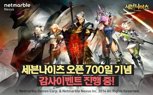 ³Ý¸¶ºí°ÔÀÓÁî(ÀÌÇÏ ³Ý¸¶ºí, ´ëÇ¥ ±Ç¿µ½Ä)´Â ¸ð¹ÙÀÏ RPG(¿ªÇÒ¼öÇà°ÔÀÓ) ¡®¼¼ºì³ªÀÌÃ÷(°³¹ß»ç ³Ý¸¶ºí³Ø¼½º)¡¯ÀÇ Ãâ½Ã 700ÀÏÀ» ¸Â¾Æ ´Ù¾çÇÑ À̺¥Æ®¸¦ ½Ç½ÃÇÑ´Ù°í 4ÀÏ(¸ñ) ¹àÇû´Ù.