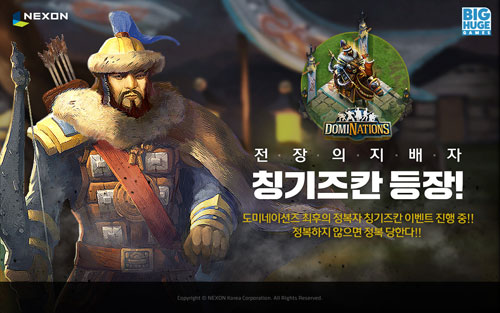 ¢ß³Ø½¼(´ëÇ¥ ¹ÚÁö¿ø)Àº ºòÈÞÁî°ÔÀÓÁî(Big Huge Games)°¡ °³¹ßÇÑ Àα⠸ð¹ÙÀϰÔÀÓ ¡®µµ¹Ì³×À̼ÇÁî(DomiNations)¡¯¿¡ ½Å±Ô À̺¥Æ® ¿µ¿õ ¡®Äª±âÁîÄ¡¯À» 25ÀÏ Ãß°¡Çß´Ù.
